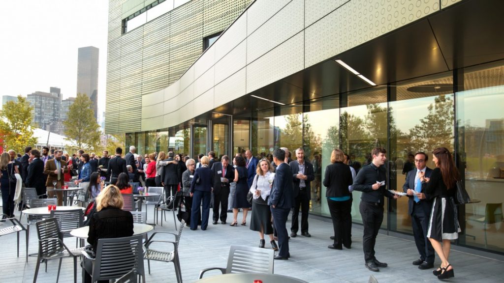 On Roosevelt Island Sept. 12, on the eve of the Cornell Tech campus dedication, excitement was already building. Guests gathered on the new campus for a cocktail hour, art tours, live musical entertainment and a celebration dinner in a large tent that hosted the ribbon-cutting dedication ceremony the next morning.