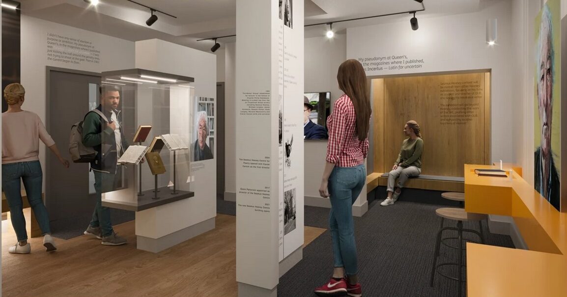 The new centre will feature an expanded poetry library, a large venue space, teaching rooms, academic offices, work stations for up to 30 students, and an exhibition area to display the Seamus Heaney archive held by Queen’s.