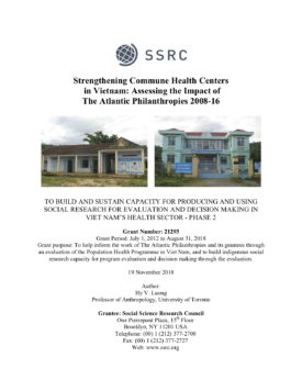 This report assesses the impact of investments in rural health care in Viet Nam by The Atlantic Philanthropies, the Vietnamese government, and other international donors. It is based on a large-scale longitudinal study from 2008 to 2016 in twelve communes in three Vietnamese provinces: Thái Nguyên in the north, Khánh Hòa in the central coast, and Vĩnh Long in the southern Mekong delta. The study was conducted by the Vietnam Academy of Social Sciences (VASS) and the Social Science Research Council (SSRC).